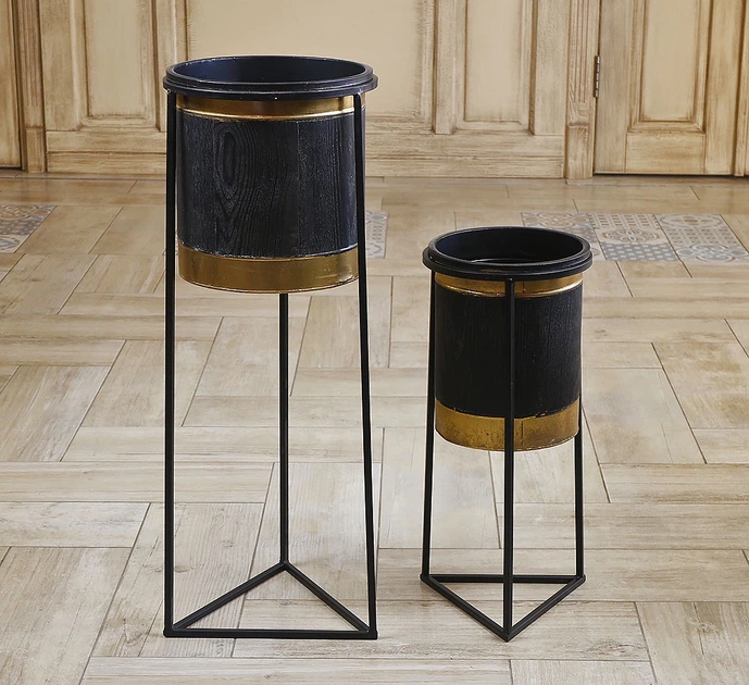 Набір 2-х кашпо для квітів із металу на підставці чорно-золотий Гранд Презент 92058