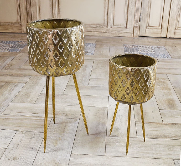 Набір 2-х кашпо із металу на трьох ніжках Ретро золота бронза Гранд Презент 60288