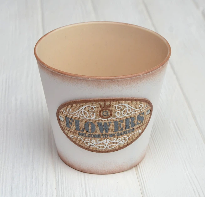 Декоративне пластикове кашпо Flowers 11,5*13 см бежевий 1 шт.
