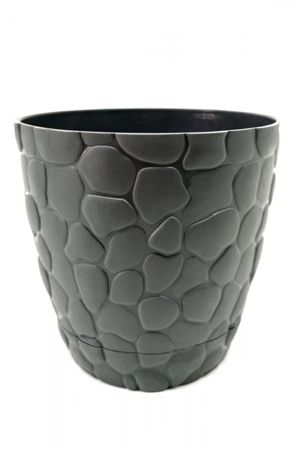 Горщик для квітів з малюнком КАМЯНІ (11.5*10.5 см) 0.75 л, Антрацит, Elif Plastik, Туреччина Е-441