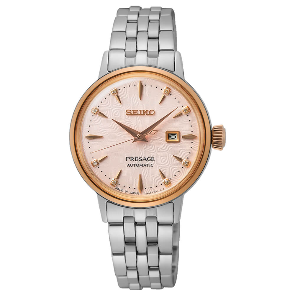 Жіночий годинник SEIKO SRE012J1 PRESAGE COCKTAIL TIME DIAMOND TWIST У МАГАЗИНІ BEZEL ТІЛЬКИ 100% ОРИГІНАЛЬНІ ГОДИННИКИ! Seiko SRE012J1 Presage Coctail Time Pink Lady Колекція Presage, що пропонує найкраще в японській механічній годинниковій справі, поєднує в собі точні технології з чудовою майстерністю та дизайном. Натхненні яскравістю сучасних міст, моделі Cocktail Time висловлюють хвилювання сьогоднішнього Токіо свіжим