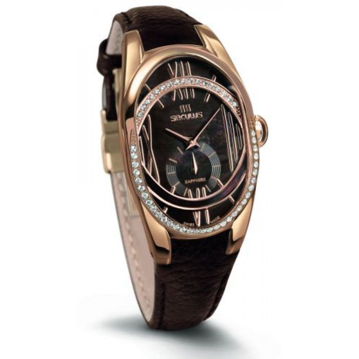 Наручний годинник Seculus 1668.2.1064 brown, pvd-r cz stones, brown leather