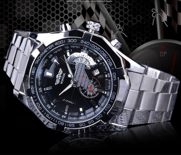 Чоловічий наручний механічний годинник Winner металевий сталевий Віннер