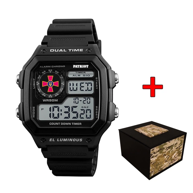 Чорний годинник чоловічий наручний з підсвічуванням електронний водонепроникний і протиударний квадратний спортивний дата се