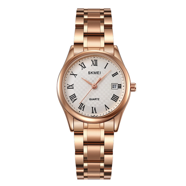 Жіночий годинник металевий Skmei з датою Рожеве золото (z071-2)