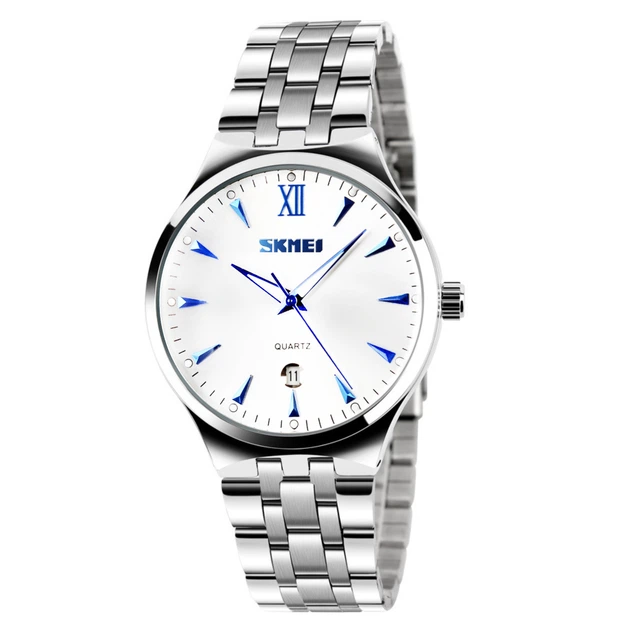 Годинник металевий Skmei з датою чоловічий жіночий Сріблястий/Білий (z063-2)