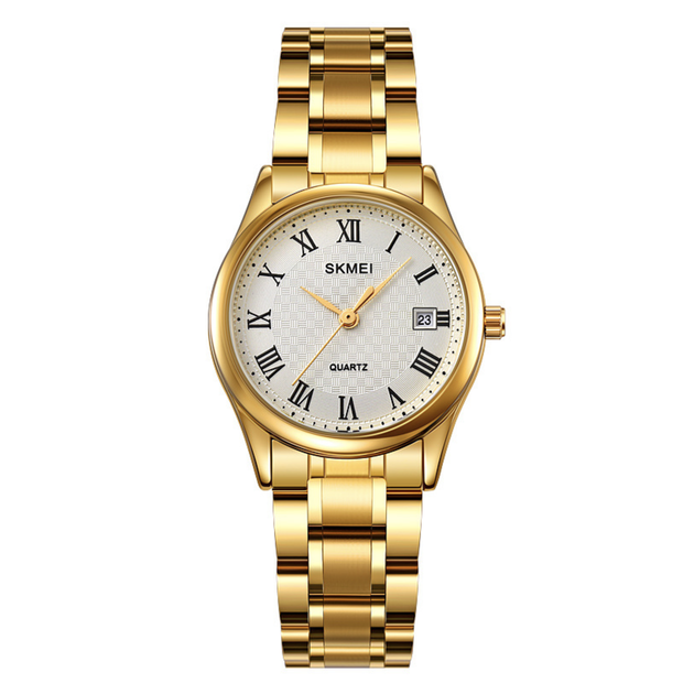 Жіночий годинник металевий Skmei з датою Золотистий (z071-3)
