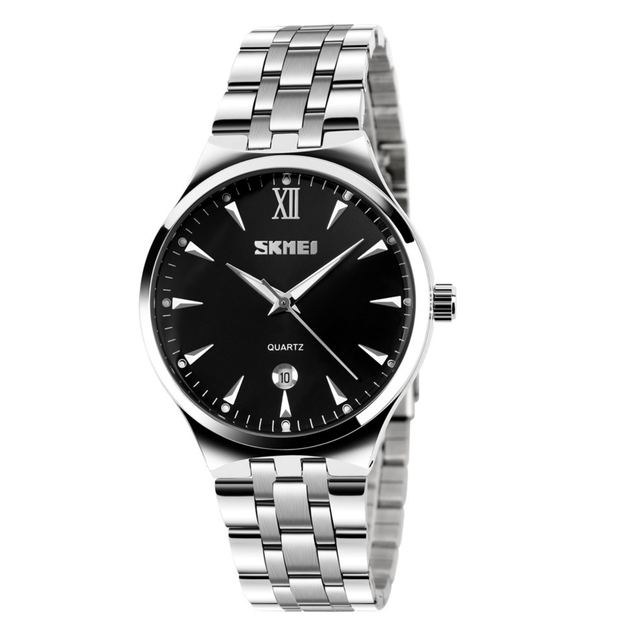 Годинник металевий Skmei з датою чоловічий жіночий Сріблястий/Чорний (z063-1)
