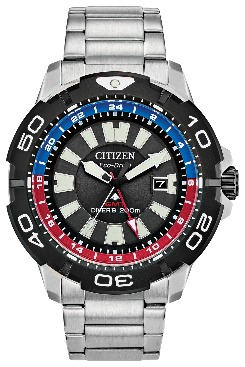 Чоловічий годинник Citizen BJ7128-59E Eco-Drive Diver 200m В МАГАЗИНІ BEZEL ТІЛЬКИ 100% ОРИГІНАЛЬНІ ГОДИННИКИ! Citizen BJ7128-59E Eco-Drive Diver Повнофункціональний годинник для дайвінгу з яскравими кольорами Promaster GMT Diver з технологією Eco-Drive від Citizen - це повний пакет. Ремінець з нержавіючої сталі та чорний циферблат прикрашені червоними та синіми акцентами, створюючи сміливий вигляд, що виділяє годинник