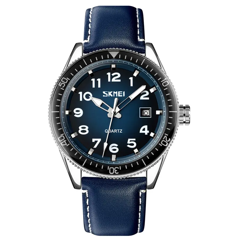 Skmei 9232LSIBU Silver-Blue-Leather Strap