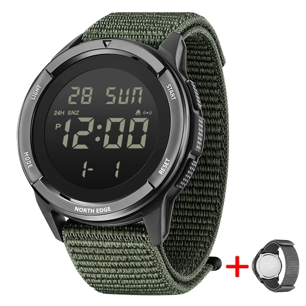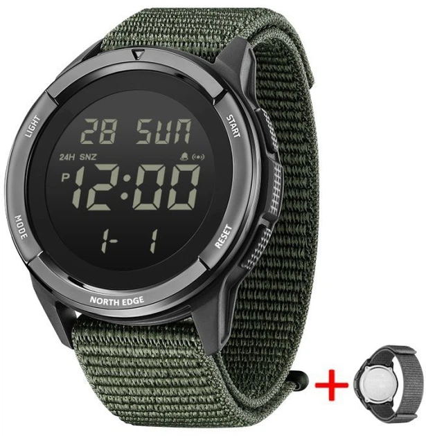 Чоловічий водостійкий спортивний тактичний годинник North Edge Terrax Green, 2 ремінці