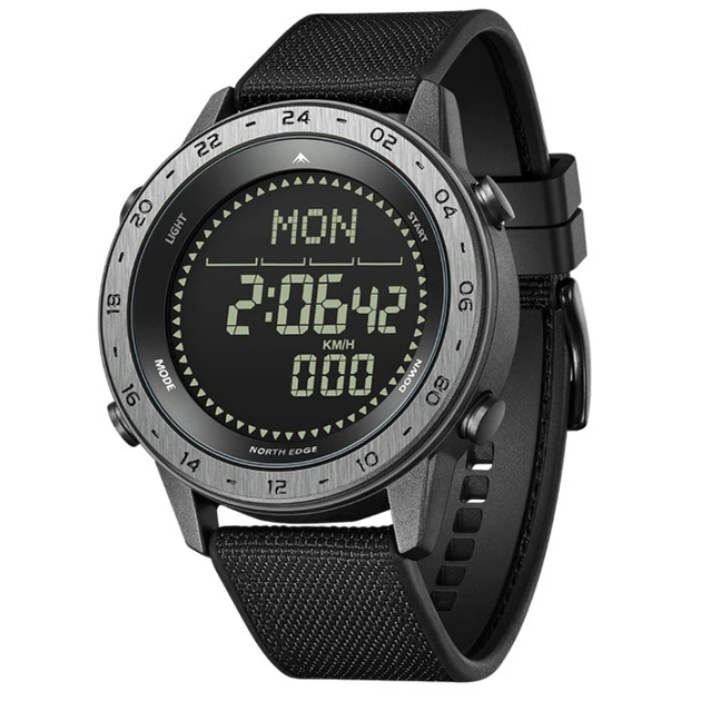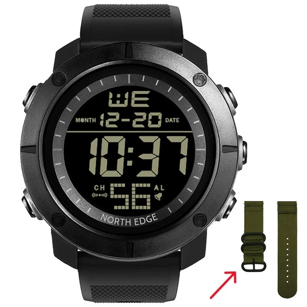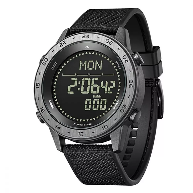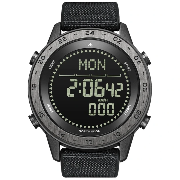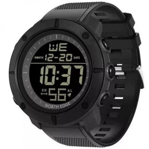 Цифровий годинник NORTH EDGE TANK 3, з нержавіючої сталі, загартоване скло, з компасом, крокоміром і водозахистом 5 ATM, Чор
