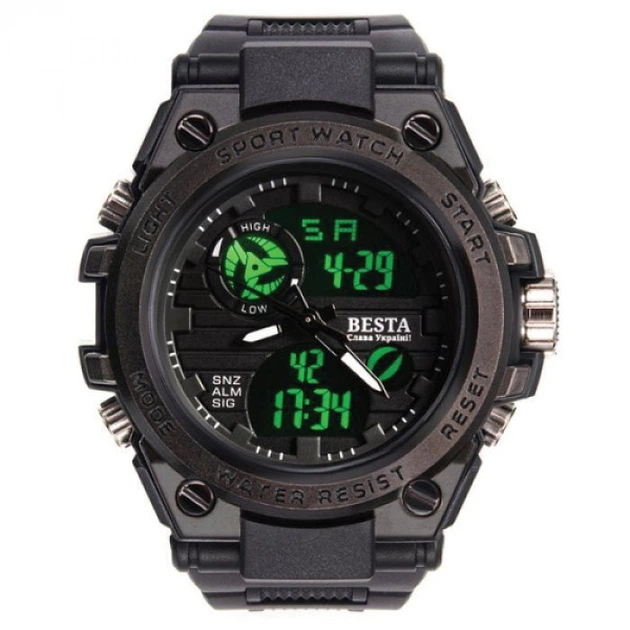 Годинник Besta Tattoo ЗСУ Чорний Будильник Дата День тижня Місяць Підсвічування Секундомір Тактичний годинник
