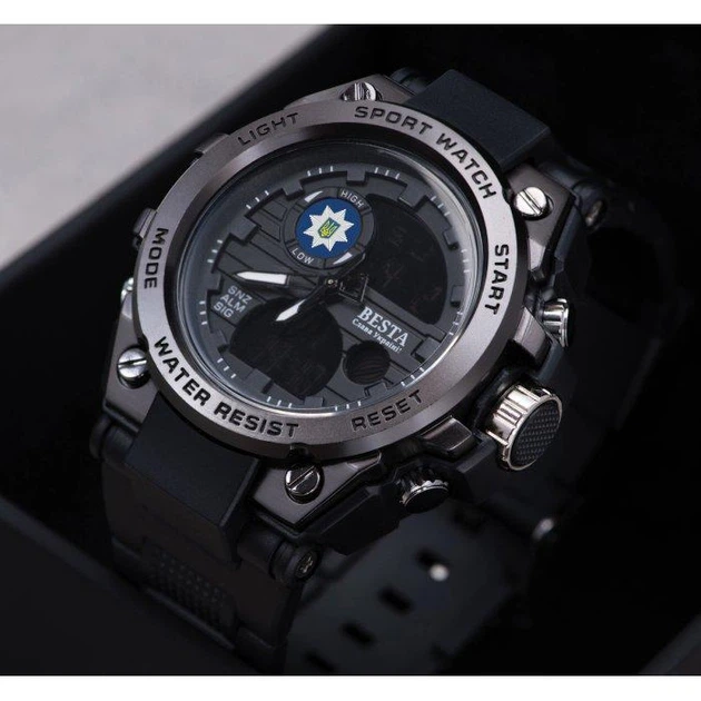 Наручний чоловічий тактичний годинник Besta Tattoo з логотипом Police Чорний