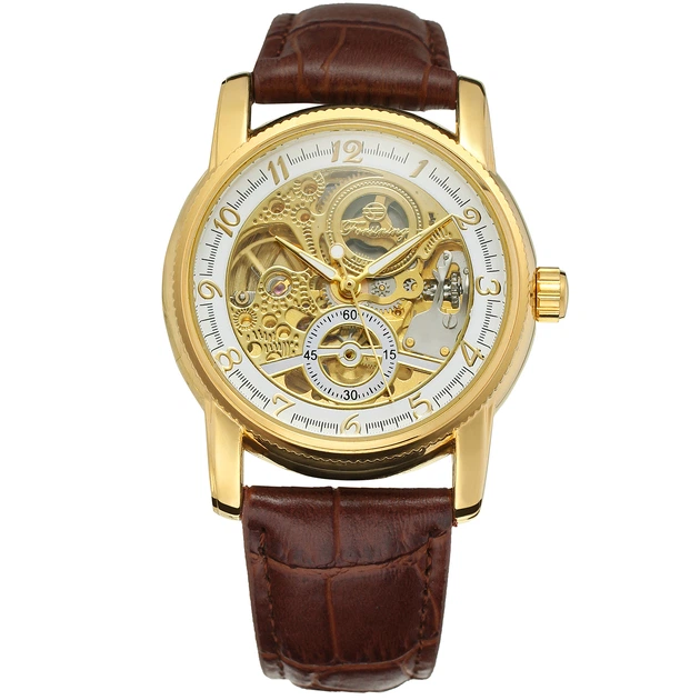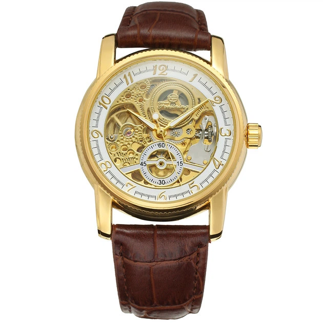 Чоловічий Годинник Золотий З Коричневим Ремінцем Механічний Forsining Star Ii (279952)