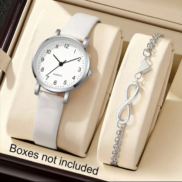 Стильний жіночий кварцовий годинник Geneva білий + браслет з нержавіючої сталі зі знаком безкінечності