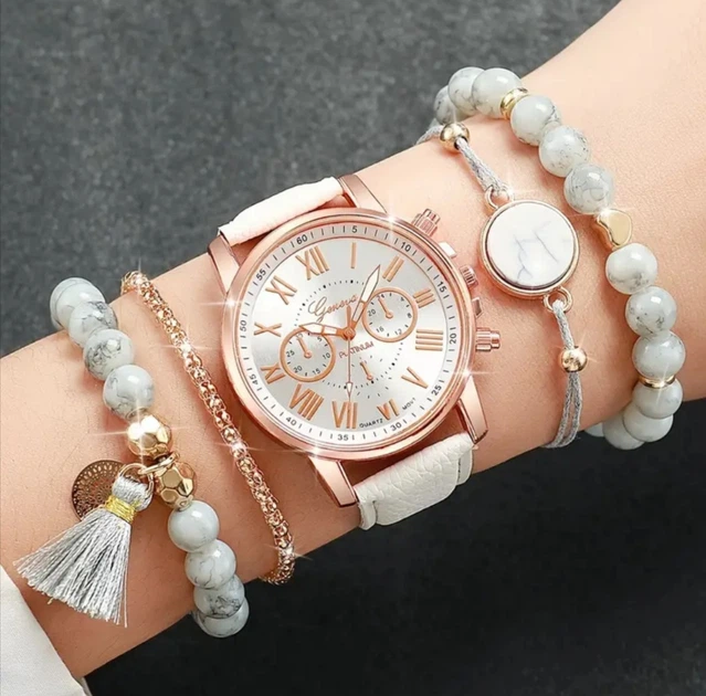 Жіночий годинник кварцовий Geneva Білий + 4 браслета