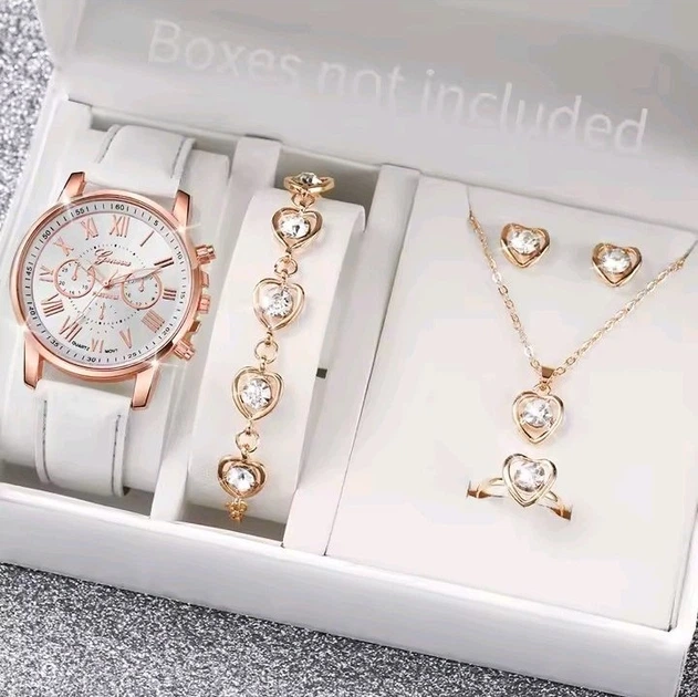 Жіночий годинник Geneva Білий + набір біжутерії (Maxr-00577)