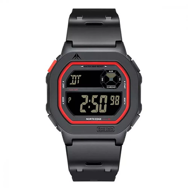 Цифровий годинник NORTH EDGE X1, водонепроникність 5 ATM, корпус із полікарбонату, чорно-білий LCD дисплей, силіконовий ремі