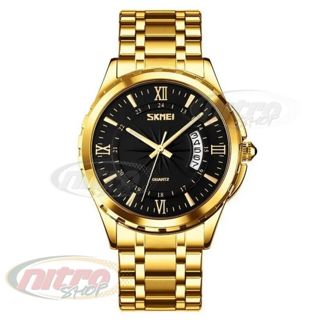 Годинник наручний 9069GDBK SKMEI, Золотий ремінь, Чорний циферблат (GOLD-BLACK)