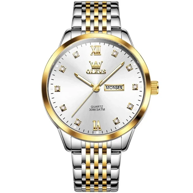 Годинник чоловічий металевий браслет Olevs 2943 Кварцовий Срібно-золотий (ol2943wa)