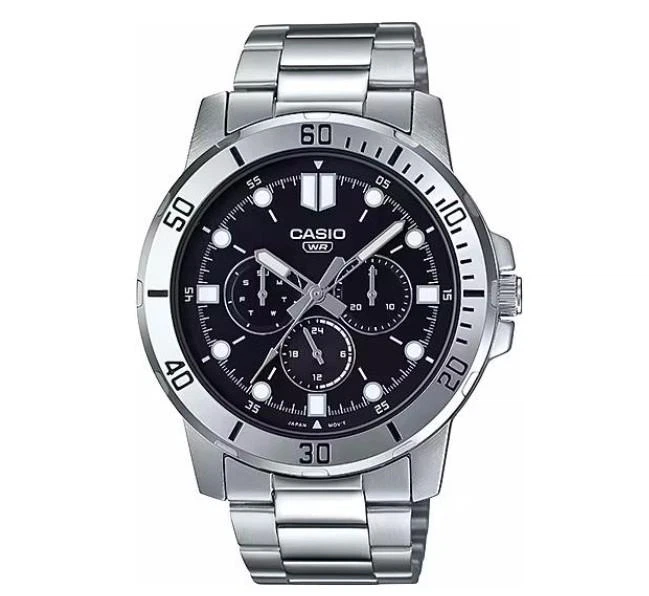 Наручний годинник CASIO MTP-V006D-1C Чорний/Сріблястий з кварцовим механізмом