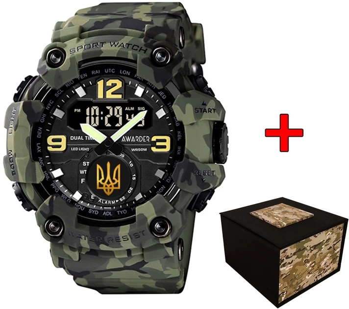 Чоловічий годинник Awarder 004CMGRSBU СБУ Зелений камуфляж + Коробка. (A-045789)