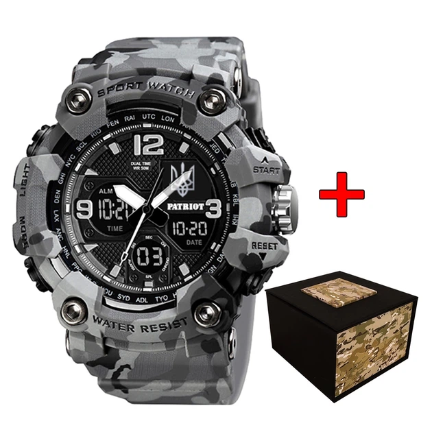 Годинник Patriot Тризуб сірий камуфляж для чоловіків кварцові з будильником та секундоміром (546920)