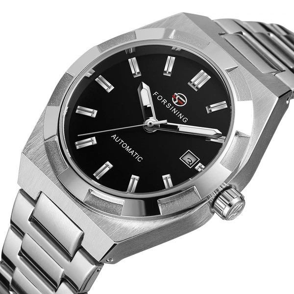 Чоловічий Механічний Годинник Forsining Temp На Руку Срібний З Чорним Циферблатом (275454)