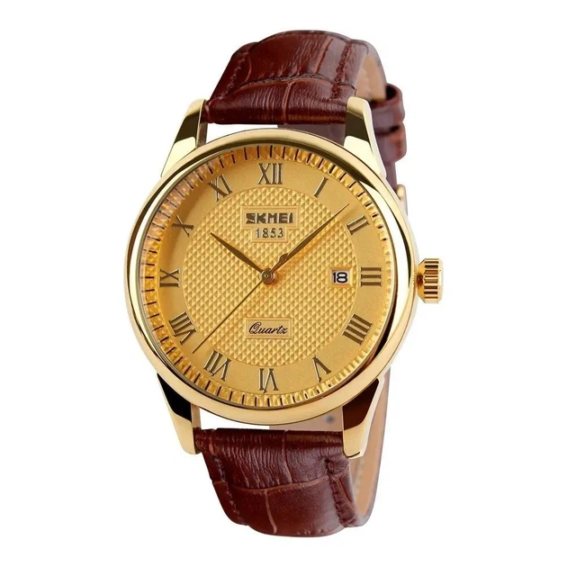Годинник чоловічий наручний класичний Skmei 9058 Коричневий з золотим