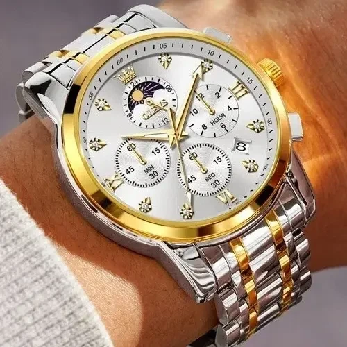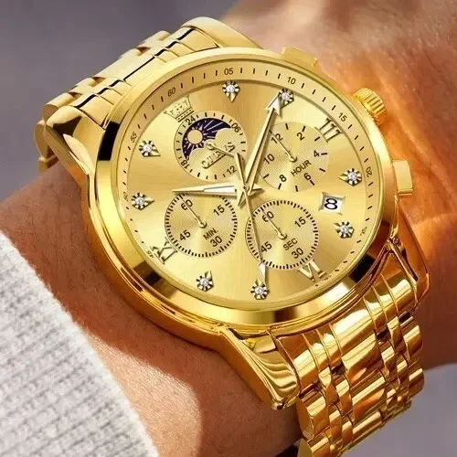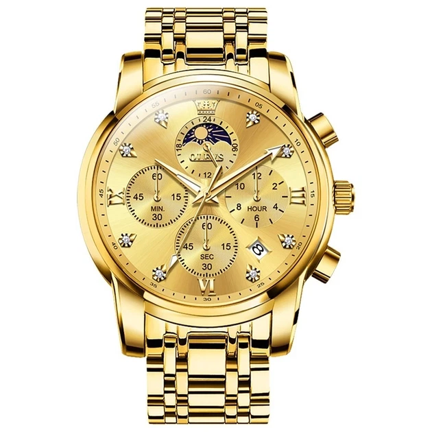 Чоловічий годинник Olevs 3655 Gold з хронографом та браслетом з нержавіючої сталі (ol3655gold)