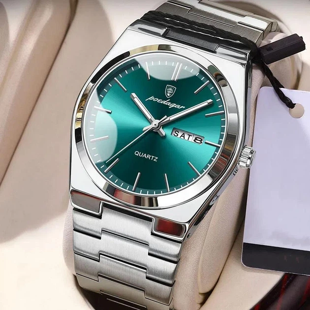 Чоловічий годинник Poedagar 737 срібні, смарагдовий циферблат