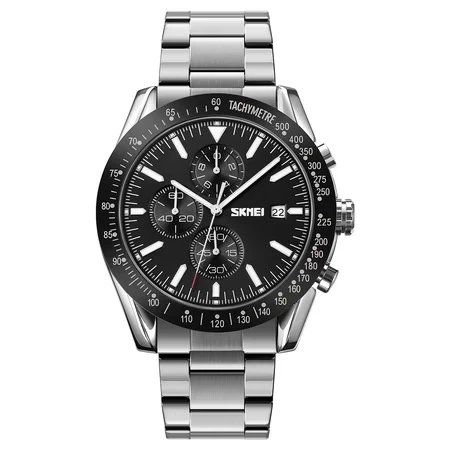 Годинники Skmei 9253SIBK Silver-Black кварцові чоловічі з хронографом та календарем для повсякденного використання (547221)