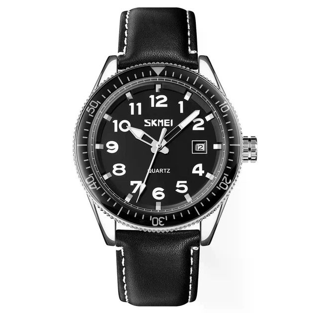 Наручний чоловічий класичний годинник Skmei 9232 (Сріблястий на чорному ремінці)