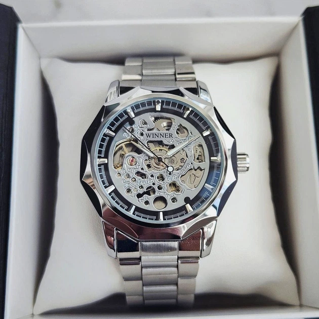 Чоловічий механічний годинник скелетон Winner Brutal Silver