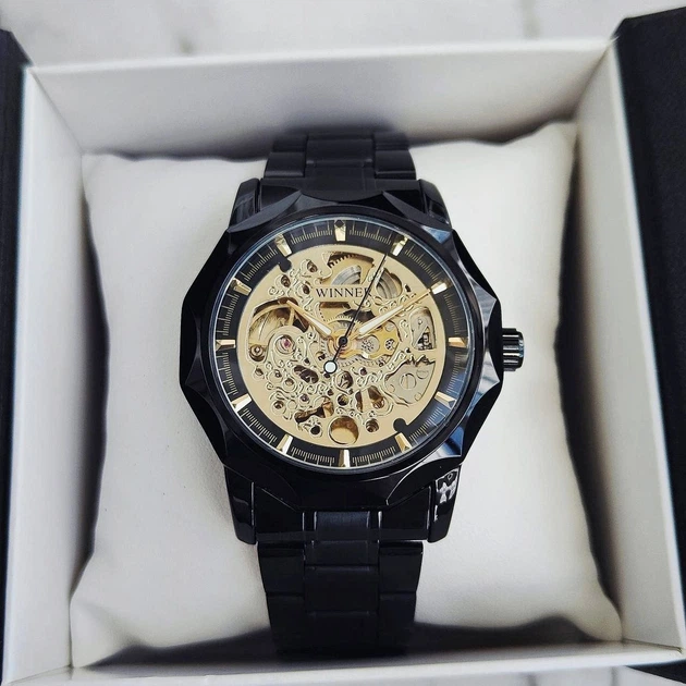 Чоловічий механічний годинник скелетон Winner Brutal Black
