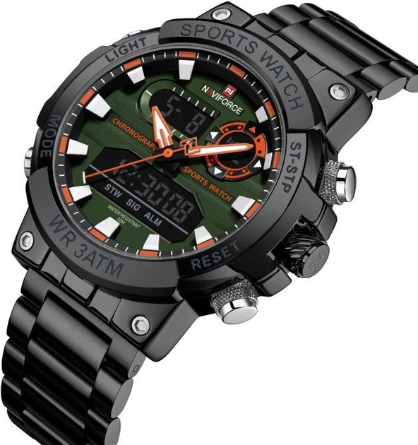 Чоловічий Наручний Годинник Naviforce Brutal Спортивний Чорний Стальний Кварцовий Секундомір Naviforce (350422)