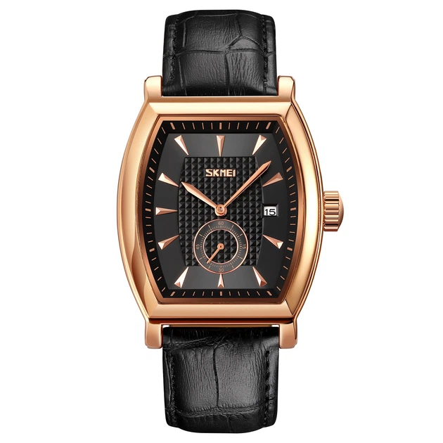 Годинники Skmei 9306RGBK рожеве золото чорний кварцові чоловічі для повсякденного носіння стильні (547627)