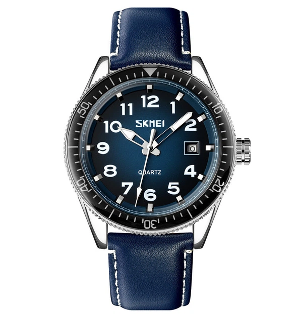 Часи наручні Skmei 9232LSIBU Silver-Blue-Leather Strap