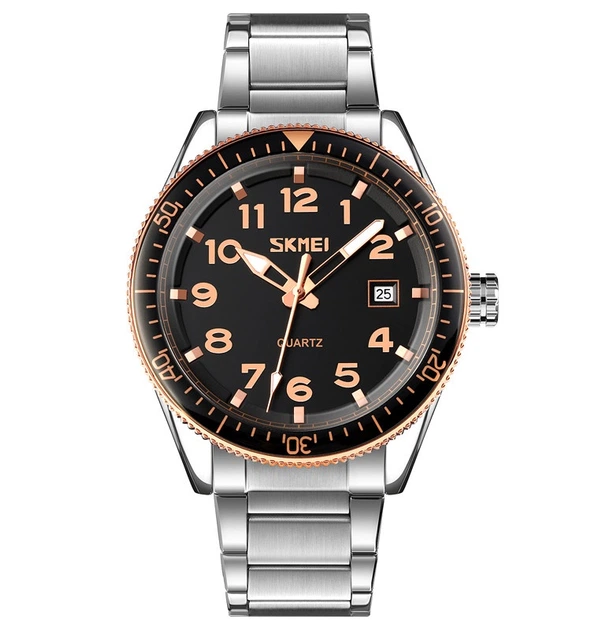 Годинники Skmei 9232SRGBK рожеве золото чорний чоловічі кварцові стрілочні з календарем та підсвічуванням (547585)