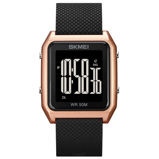 Годинник Skmei 1866RGBK рожеве золото чорні унісекс електронні з будильником та секундоміром (548757)