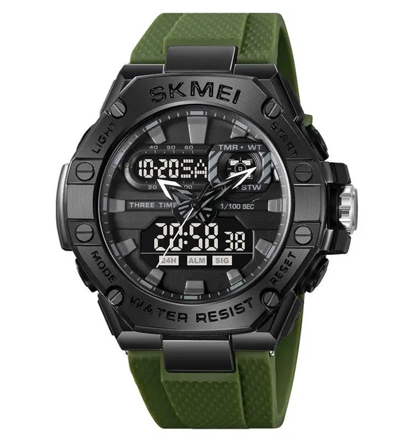 Спортивний годинник Skmei 2221 з подвійним дисплеєм та підсвічуванням зеленим ремінцем