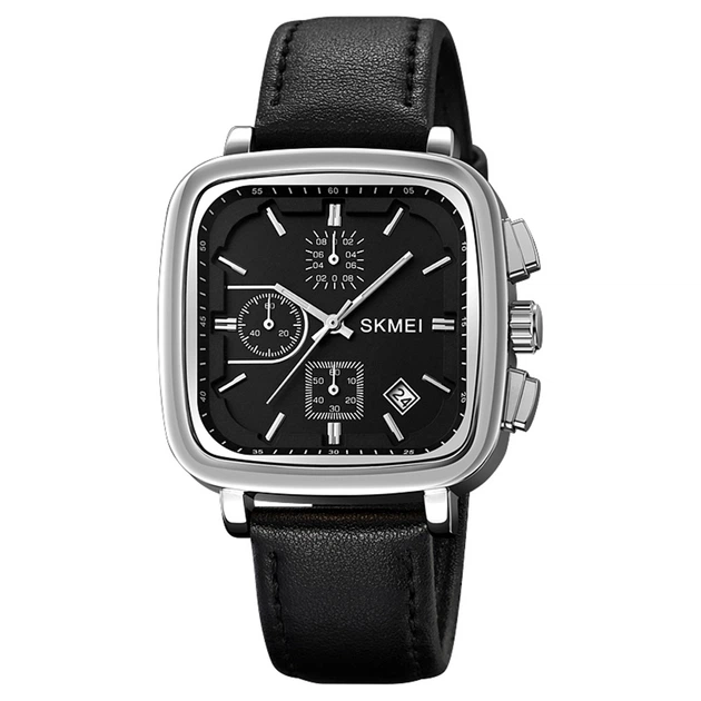 Годинники Skmei 2182BKSI чорні кварцові чоловічі зі шкіряним ремінцем та секундоміром класичні стрілочні (547702)