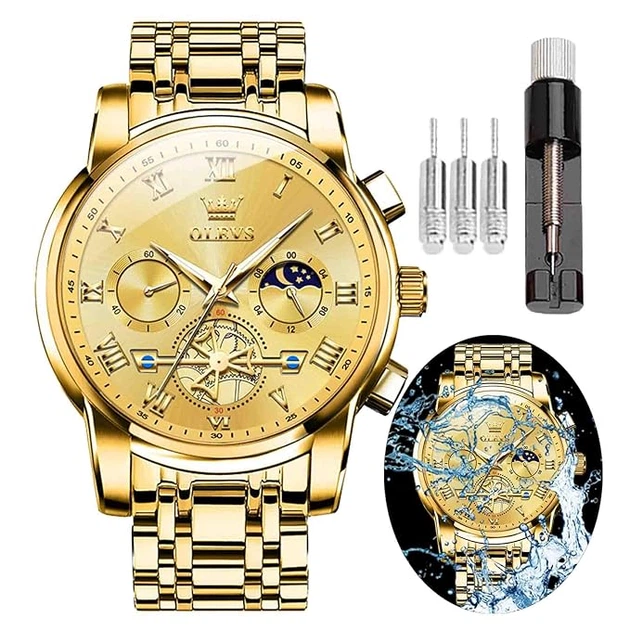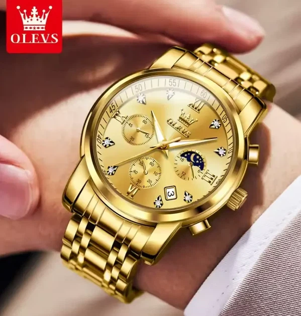 Чоловічий годинник Olevs 2870 Gold хронограф наручний кварцовий сталевий (ol2870gold)