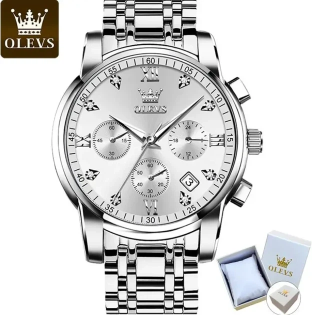 Годинник Olevs 2858 White Natural | Класичний чоловічий наручний годинник, білий циферблат, сталевий корпус, водостійкий (ol