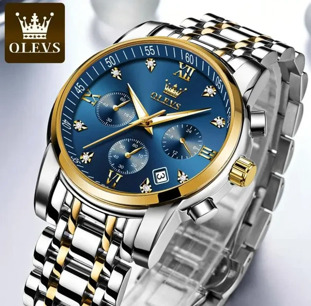 OLEVS 2870 годинник чоловічий з хронографом – преміум аксесуар у синьо-золотому дизайні (ol2870bla)