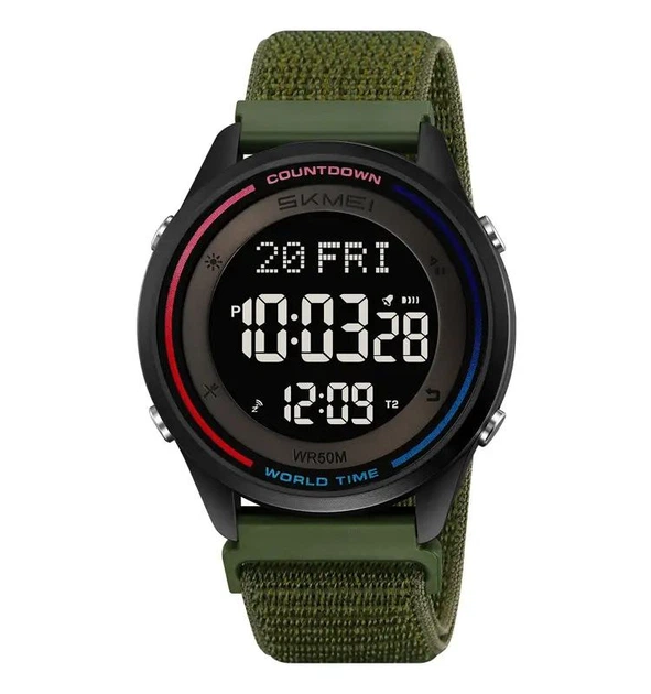 Чоловічий наручний спортивний годинник Skmei 2412 з нейлоновим ремінцем на липучці (Зелений)