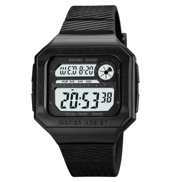 Годинник наручний чоловічий спортивний Skmei 2022 (Чорний з білим циферблатом)