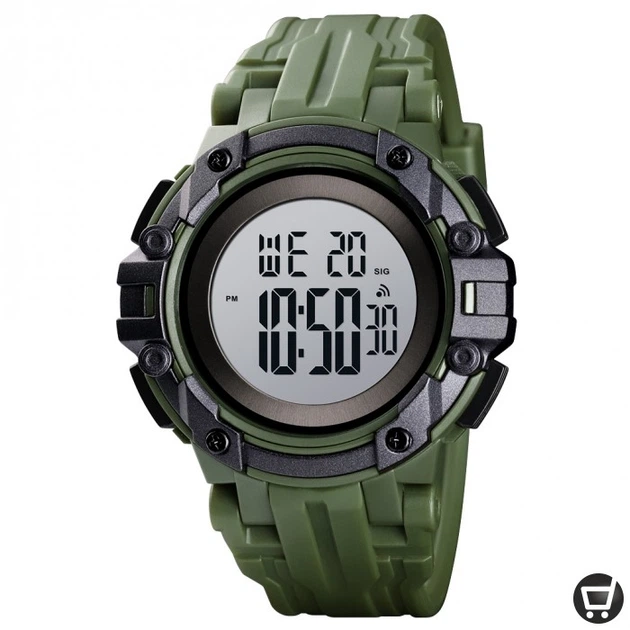 Годинник Skmei 1545AG Army Green водонепроникні спортивні чоловічі з будильником та секундоміром (547169)