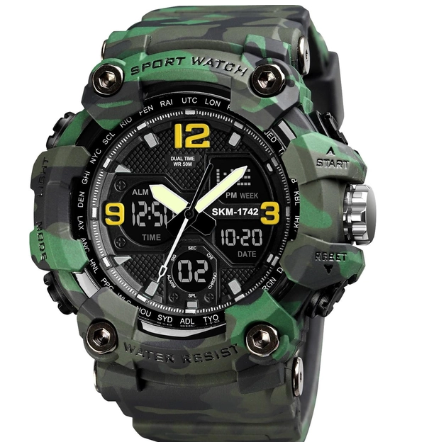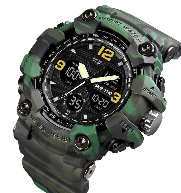 Годинник Skmei 1742 Green Military чоловічі спортивні кварцові з будильником та секундоміром камуфляжні (547005)